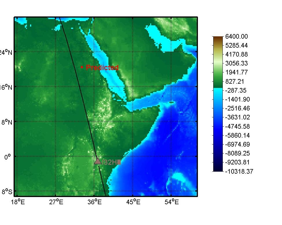 "Half an hour before the predicted impact of asteroid 2008 TC3, I informed an official of Air-France-KLM at Amsterdam airport about the possibility that crews of their airliners in the vicinity of impact would have a chance to see a fireball. And it was a success! I have received confirmation that a KLM airliner, roughly 750 nautical miles southwest of the predicted atmospheric impact position, has observed a short flash just before the expected impact time 0246 UTC. Because of the distance it was not a very large phenomenon, but still a confirmation that some bright meteor has been seen in the predicted direction. Projected on an infrared satellite-image of Meteosat-7 of 0300 UTC, I have indicated the position of the plane (+) and the predicted impact area in Sudan (0)."
